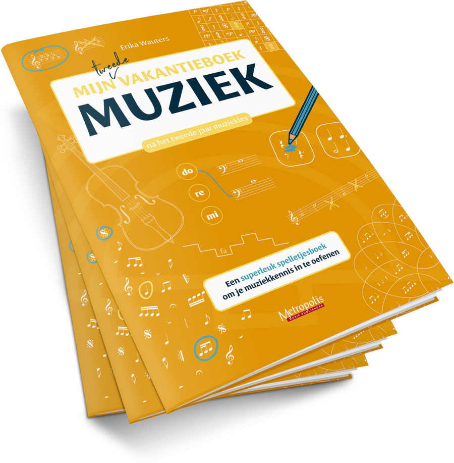 Mijn Tweede Vakantieboek Muziek is geschikt voor kinderen die hun tweede jaar muziekles achter de rug hebben. Dit kan in de academie zijn, maar evengoed via privéles. Mijn Tweede Vakantieboek Muziek is op kindermaat (lagere schoolleeftijd) geschreven, maar ook jongeren en volwassenen kunnen er plezier aan beleven. Voor de meeste oefeningen heb je muzikale kennis nodig. Denk hierbij aan de noten in sol- en fasleutel, toonladders tot één kruis/mol, ritmes, muzikale begrippen,…